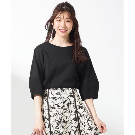 立体的な袖でオシャレに体型カバーできるクロップドカットソー