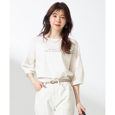 ・立体的に作られたドルマンコクーンスリーブがデザインポイント・袖デザインがさりげなく二の腕をおおい、オシャレに体形カバー・腕の上げ下げがしやすい袖下マチ入り・裾のスリットがインでもアウトでも決まるデザイン・#101・#104プリント有り 「人生は出逢いで出来ている」