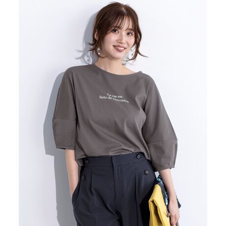 ・立体的に作られたドルマンコクーンスリーブがデザインポイント・袖デザインがさりげなく二の腕をおおい、オシャレに体形カバー・腕の上げ下げがしやすい袖下マチ入り・裾のスリットがインでもアウトでも決まるデザイン・#101・#104プリント有り 「人生は出逢いで出来ている」