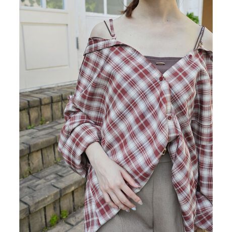 スカート合わせの時はオフショルスタイルで、キャミワンピース合わせの時は肩紐を取り外して羽織りスタイルがおすすめ。