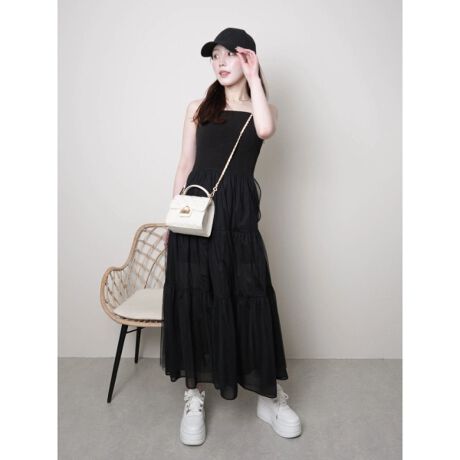 ・スカート部分はチュールとシフォンの2重仕様でティアードフレアのしっかりとしたボリューム感。
