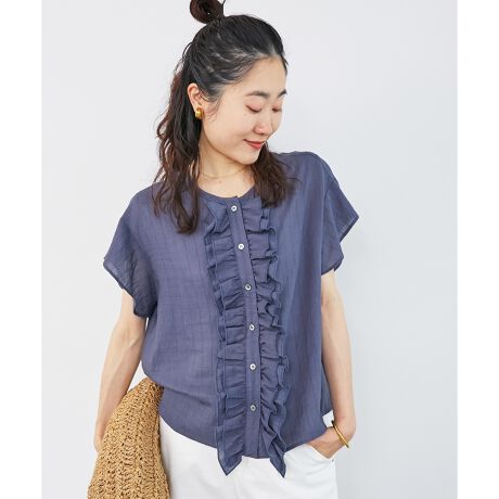 フロントの2段フリルと甘さを抑えた細ストライプが華やかな一枚