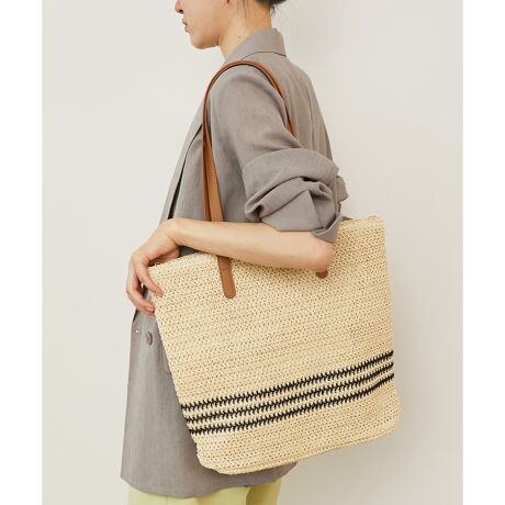 [型番:3553129221]《WEB限定アイテム》春夏のコーデのアクセントになるペーパー素材のトートバッグラインの入ったデザインはシンプルながらに程よいアクセント。ナチュラルな雰囲気が様々なコーデに溶け込んでくれます。ジップ付きで安心してお使いいただけます。