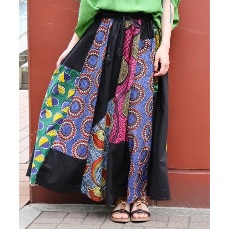 カラフルなアフリカン柄が印象的!フレアロングスカート