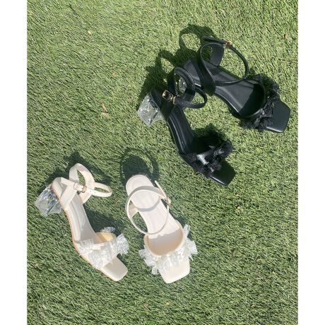 360度どこからみてもかわいい!レースリボン×クリアヒールの華やかサンダル