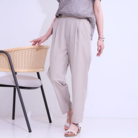 脚のラインを拾いにくく、きれいに見えるややゆったりシルエットのテーパードパンツ。
