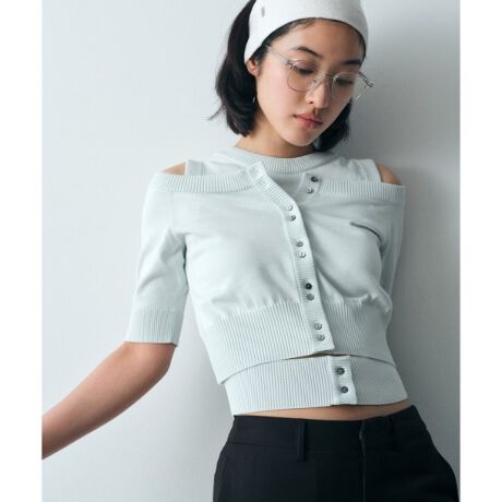 オフショルにもできるコンパクトなサイズ感が魅力のミニカーディガンです。