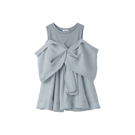 上品なオーガンジー素材で前後にノットデザインをプラスしたトップスが存在感たっぷり。
