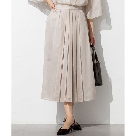 フロント部分に重なったプリーツを入れたタックスカート。贅沢な分量感と、フロントのデザインがポイントです。生地をたっぷりと使用していますがタックデザインで広がりすぎずに、スッキリと着ていただけます。カラーは、キャッチ―なライトオレンジ(#022)、上品な印象のベージュ(#033)、トレンド感のあるダークグリーン(#065)、こなれ感のあるダークブラウン(#035)の4色展開です。