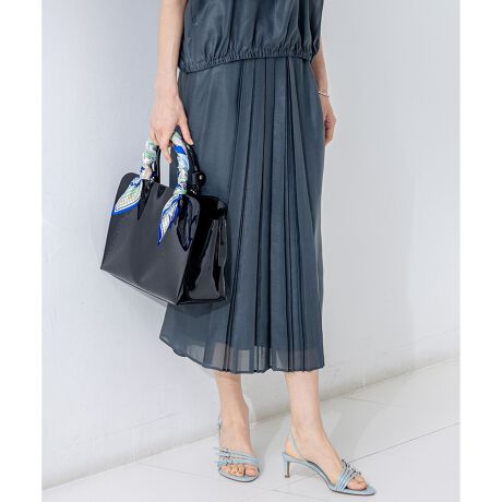 フロント部分に重なったプリーツを入れたタックスカート。贅沢な分量感と、フロントのデザインがポイントです。生地をたっぷりと使用していますがタックデザインで広がりすぎずに、スッキリと着ていただけます。カラーは、キャッチ―なライトオレンジ(#022)、上品な印象のベージュ(#033)、トレンド感のあるダークグリーン(#065)、こなれ感のあるダークブラウン(#035)の4色展開です。