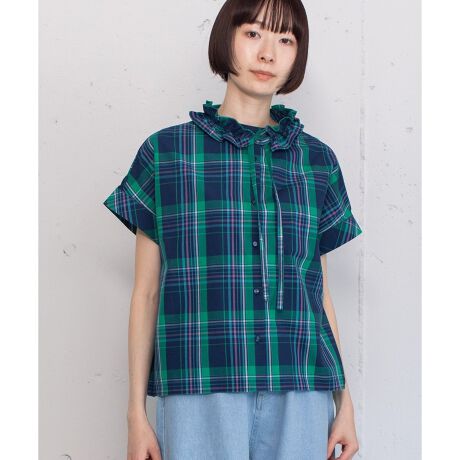 パッと目を惹くオリジナルのマドラスチェック柄のブラウス。多色使いながらもまとまったカラーリングで落ち着いた雰囲気に仕上げました。程よく首から離れたスタンドカラーがきちんと見えするデザイン。身頃続きの袖もゆったりとしていて涼しく着られます。フルオープンで羽織りとしても使えます。