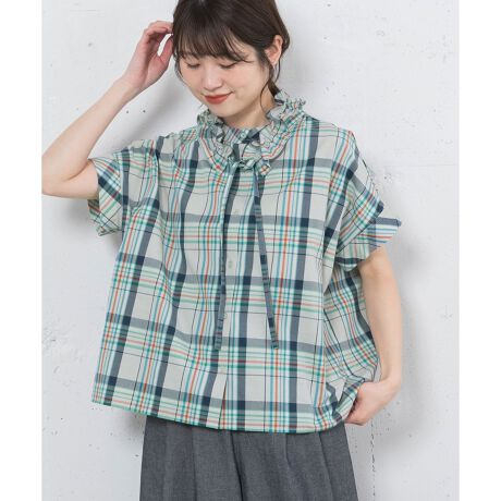 フリル衿付きマドラスチェックブラウス