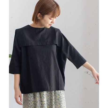 肩までかかる大きめのセーラーカラーがポイントのブラウス。大人が着たくなるデザインのセーラーブラウスに仕上げました。身頃続きのドルマンスリーブでゆったりとした着やすいサイズ感。コットンリネンローンの素材で涼しげでナチュラルな雰囲気に。お手持ちのアイテムに合わせるだけで新鮮な装いに早変わり。Tシャツ感覚で気軽に着られるのに、ちょうどいいきちんと感がある1枚です。