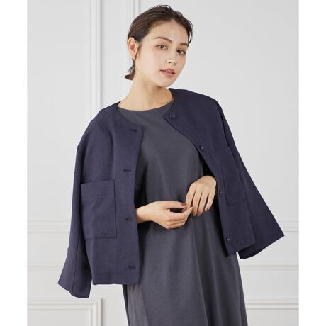 フロントのくるみ釦が特徴のノーカラージャケットです。やや短めのコンパクトなボクシーシルエットで今年らしい抜け感とカーディガンの様なライトな着心地を叶えました。モード感のある大き目のアウトポケットもポイントです。袖口は折り返し可能な仕様になっており袖丈を調節していただけます。夏に最適なきちんと感のあるジャケットです。・水洗い可・ポケットあり■サンプル撮影商品■こちらの商品はサンプルでの撮影となっております。実際の商品とは、サイズや色味、素材、デザイン等の仕様が若干変更になる場合がございます。