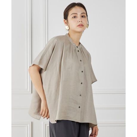 ポンチョ風のシルエットが特徴のバンドカラーブラウス。身体を締め付けないフレア感は風が通り抜ける涼しい着心地を叶えます。襟元のギャザーで表情をプラスすることで顔周りを華やかに演出します。気になる二の腕周りをカバーする袖丈にも拘りました。分量感とスリットディテールで動くたびに揺れる美しいヘムラインもポイントです。・水洗い可・裏地なし 同素材のプルオーバー品番:7052182044同素材のワンピース品番:7052121045■サンプル撮影商品■こちらの商品はサンプルでの撮影となっております。実際の商品とは、サイズや色味、素材、デザイン等の仕様が若干変更になる場合がございます。