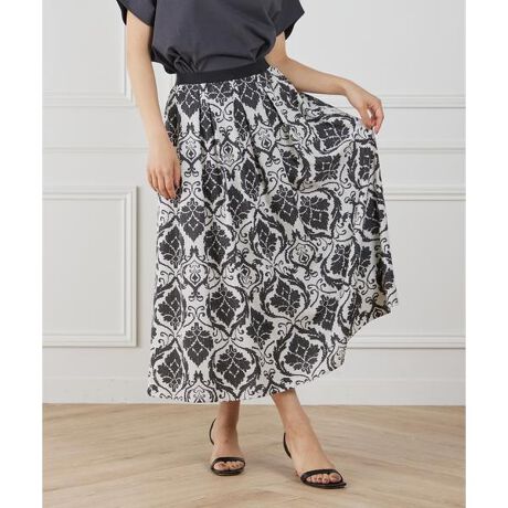 ランダムなタックを施したギャザースカート。配色のウエストベルトでデザインにメリハリをつけながら着心地の良さもプラスしました。配色の金属ファスナーでバックスタイルにもアクセントを付けました。広がりすぎないシンプルなボリューム感で涼やかにすっきりと仕上げています。シンプルなカットソー等に合わせる事でスタイリングのアクセントになるアイテムです。・裏地あり・後ろファスナーあり・ポケットあり同素材のパンツ品番:7052161863■サンプル撮影商品■こちらの商品はサンプルでの撮影となっております。実際の商品とは、サイズや色味、素材、デザイン等の仕様が若干変更になる場合がございます。