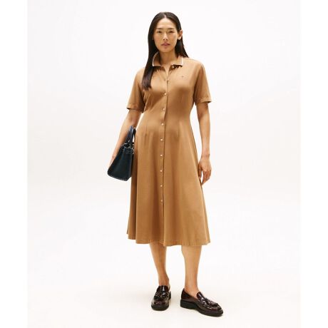 カジュアルさと上品さのバランス感が見事なポロワンピース。大人のトラッドを堪能できる一着です。膝に掛かる安心の着丈で、大人も取り入れやすくなっています。フロントはボタンを細かく並べて、シンプルなデザインのアクセントに。共布のリボンベルト付きで、シルエットアレンジを楽しめます。