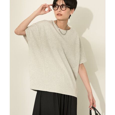 Vネックとクルーネックの前後2WAY仕様のコクーンカットプルオーバー。フレンチスリーブなので腕周りも綺麗にカバーしてくれます。肌に触れるとひんやり涼しく感じる接触冷感機能付きで暑い日も快適に着ていただけます。