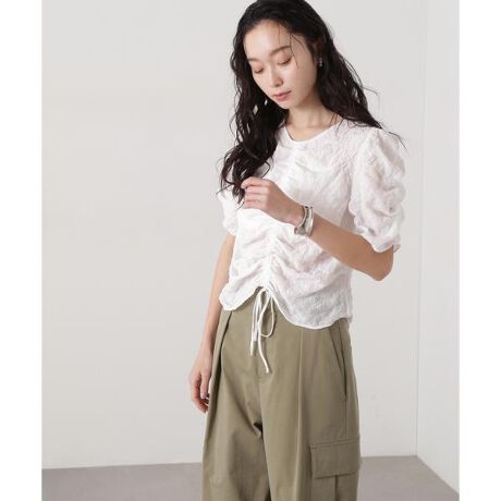 ポコポコした特徴的な素材を使用した1枚で着映えるブラウス。ギャザーやドロストデザインがアクセントになり、立体的なシルエットを演出します。今シーズン、デニム合わせもお勧めです。<素材>格子柄のシュリンク加工生地を使用しています。<詳細>仕様・開閉なし裏地・なし透け感・ややあり / 光沢・なし / 伸縮性・ややあり 生地の厚さ・普通※モデルの着用画像の場合、光の当たり具合により、実際の色味と異なって見えることがございます。色味は、商品単体の画像をご参照ください。