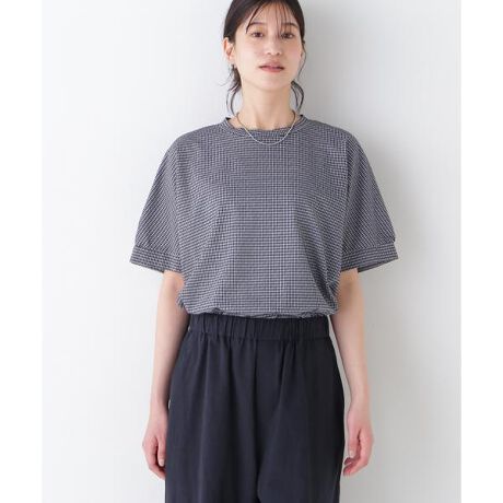 袖続きシルエットの5分袖プルオーバー。ゆったりした分量感が肌離れ感がありながら、裾で程よく落ち着く台形シルエットですっきりと着ることができます。