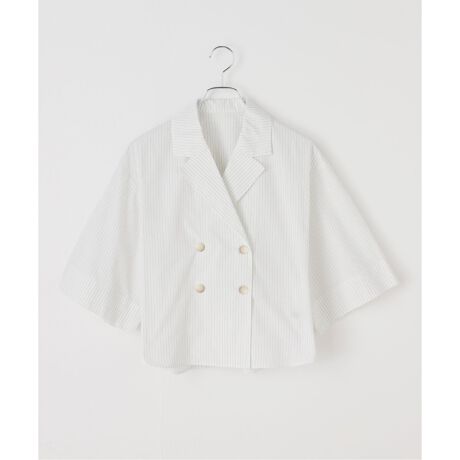 ハンサムなピンストライプの生地で女性らしいシルエットのジャケットブラウス。