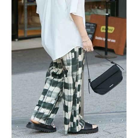 キャッチーながらモノトーン系の配色なので、シックに着こなして頂きやすいボトムスです。着こなしがシンプルになりがちな春夏のスタイリングのポイントになってくれるのもうれしいポイント。シンプルなTシャツやロンT、タンクトップなどと合わせてカジュアルにも、シャツやライトジャケットなどと合わせて大人っぽくシックに着て頂くのもおすすめです。