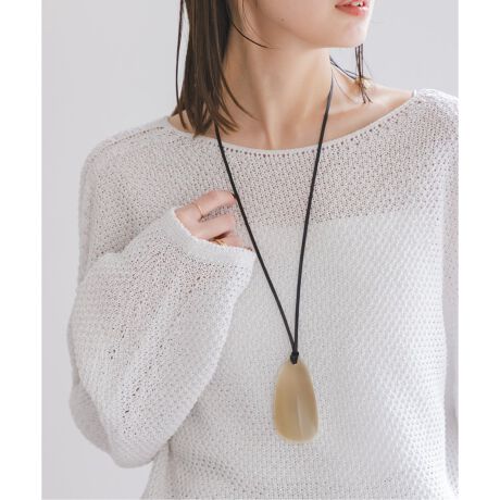 大きめのモチーフが着こなしのポイントになってくれる、ナチュラル素材のネックレス。
