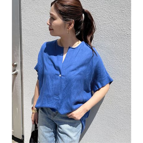 麻混で清涼感がありつつ、落ち感のあるしなやかな素材を使用し、ゆったりとしたサイズ感で夏でも涼しく着ていただけるブラウスです。