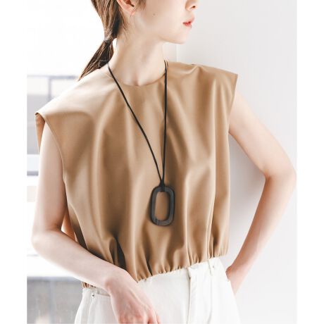 木目調のモチーフがナチュラルな雰囲気を作り出してくれるネックレス。