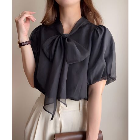 シアーバルーンスリーブボウタイブラウス