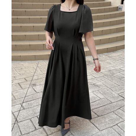 ウエストタックシアースリーブバックリボンワンピース
