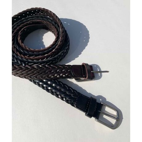 [型番:KT4GV48059]編み込みメッシュ素材で自由に留め位置を調整できるビジネスからカジュアルまで守備範囲の広レザーベルトベルトです。細かめな編み柄が上品な雰囲気になり、スラックスパンツからカジュアルパンツにまで対応できます。