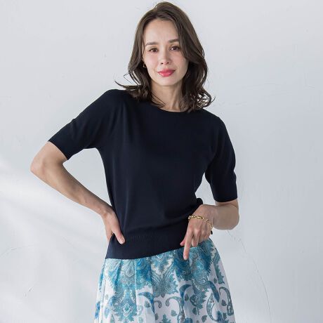 ハーフスリーブが好印象なニットトップス。