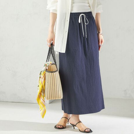 ぽこぽことした凹凸感が特徴的なコットンリップルのロングスカート。
