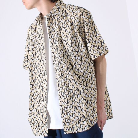 【ペンギン・恐竜・クジラ柄】アニマルプリント半袖シャツ 総柄シャツ