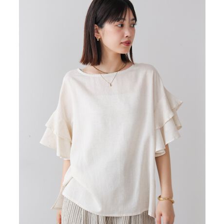 綿麻のこれからの季節に嬉しいTOPS。ナチュラルな素材感が夏の着こなしをワンランク上に見せてくれるので、様々なアイテムと相性◎