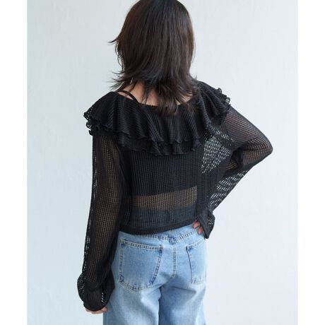 ドラマティックなフリルと、軽やかなメッシュ素材を掛け合わせたカーディガン。
