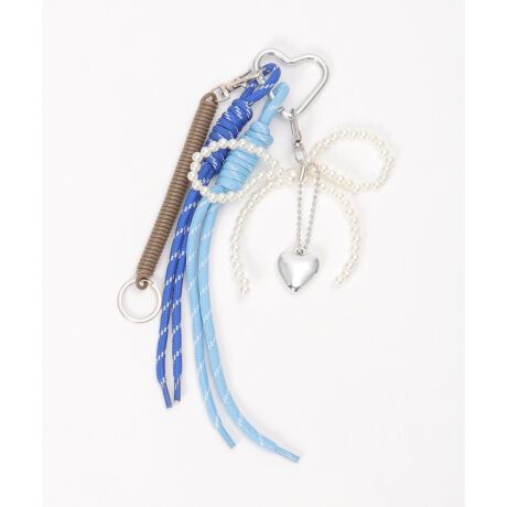パール調のリボン、メタリックなハートモチーフ、アウトドアライクなロープコードと、異素材ミックスが魅力。
