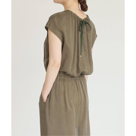 ネックラインとウエストにはギャザーを寄せ、肌離れの良いシルエットに。