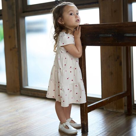 定番のハートと季節らしい貝殻の総柄は、シンプルな袖口で鮮やかな柄がより引き立ちます。
