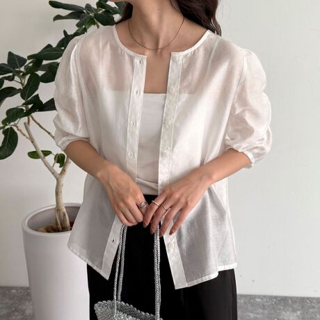 爽やかな着こなしが叶うシアー袖ボリュームブラウス