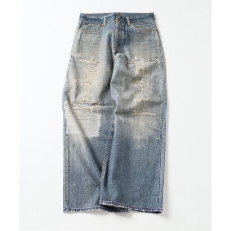 視覚的なトリックで魅せるダメージ加工をグラフィックプリントで表現した革新的な一本。まるで本物の着古したデニムのような立体感のあるプリントが、ユニークで洗練された存在感を放ちます。