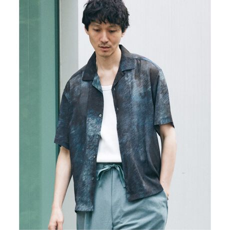 軽量でシワになりにくいポリエステル素材を使用し、機能性とデザイン性を両立したモダンな半袖シャツ。