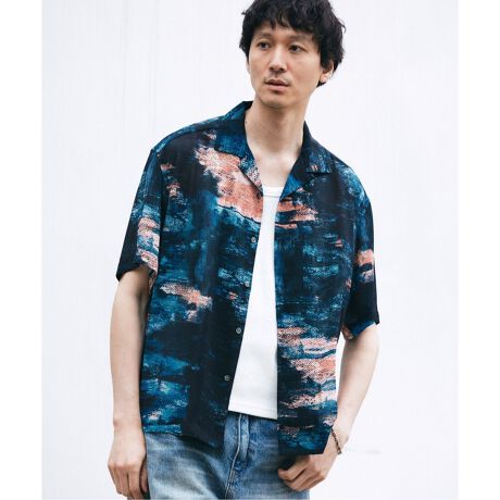 軽量でシワになりにくいポリエステル素材を使用し、機能性とデザイン性を両立したモダンな半袖シャツ。