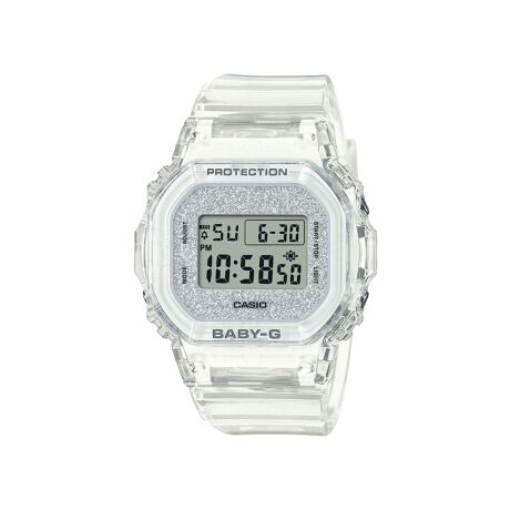 アクティブな女性に向けた耐衝撃・カジュアルウオッチBABY-Gから、キラキラ輝くグリッターダイアルとスケルトンのバンドデザインが特徴のモデルです。