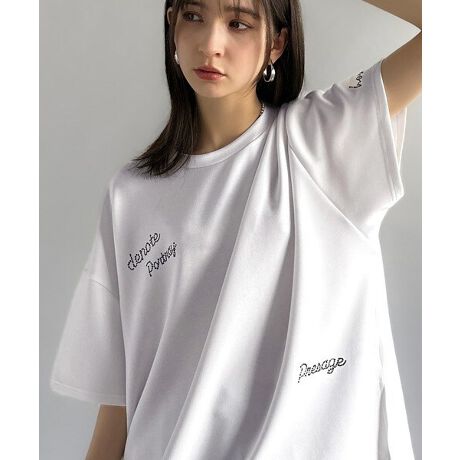 ラインストーンロゴ使いドルマンオーバーサイズTシャツ」