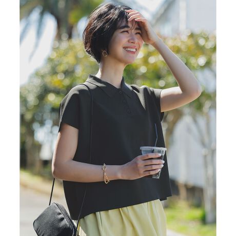 ・首元はきちんと見えするボタン付きポロ襟デザイン
