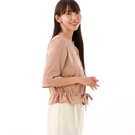ピーチサテン立衿ドロストブラウス