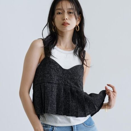 軽やかなプリーツデザインで、新鮮な印象を与えるキャミソールビスチェ。