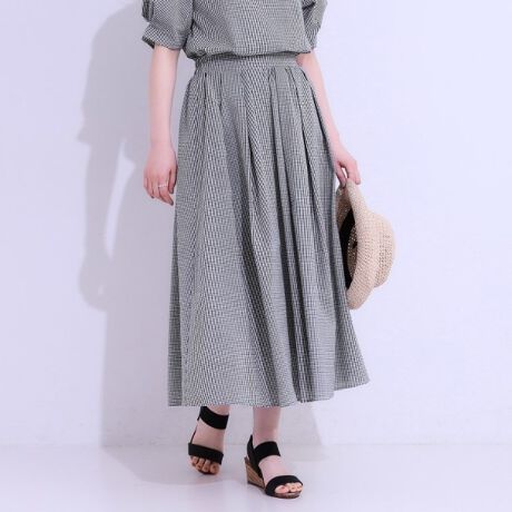 表面感のあるサッカー素材のフレアースカート
